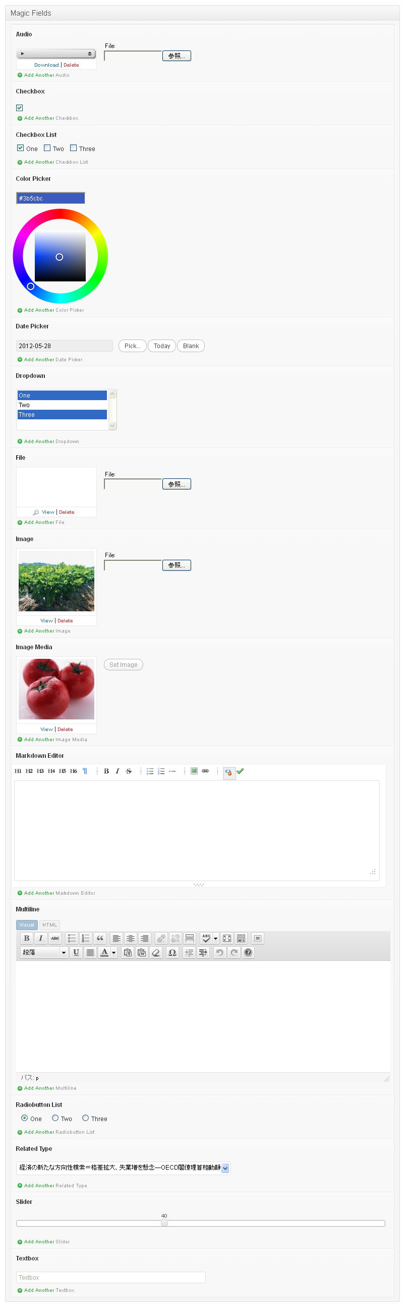 「Can be duplicated」にチェックをつけると「Add Anothor ***」が出現しフィールドを増やせます。