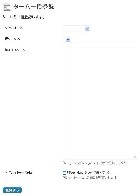 タームの登録って面倒くさいですよね。4つ5つ程度ならいいんですが、2、30個なんてケースも決して珍しくありません。